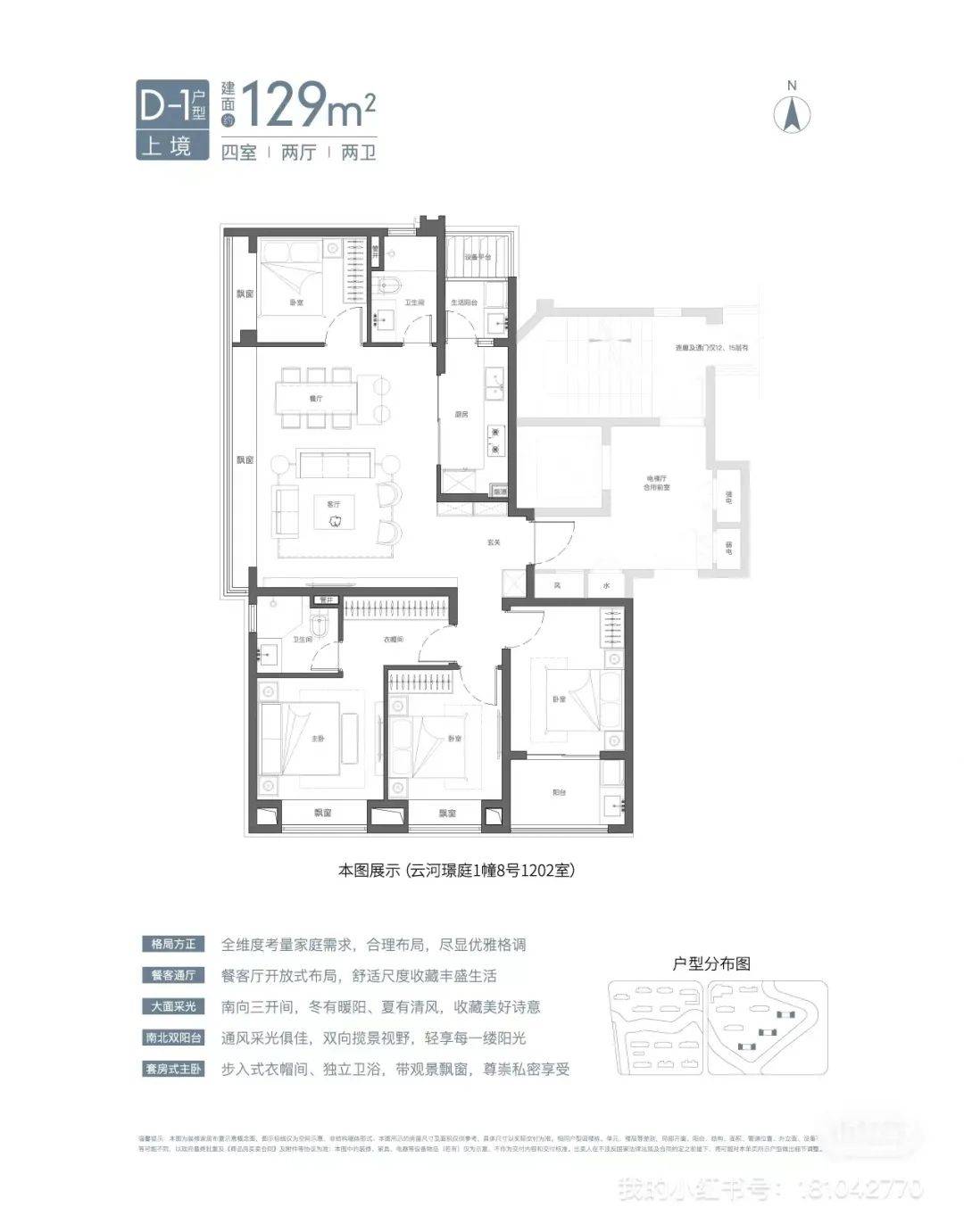 该户型相比传统三开间(只能南北观景)有一个很大优势:多一面采光面,能达到270°环幕采光和视野。