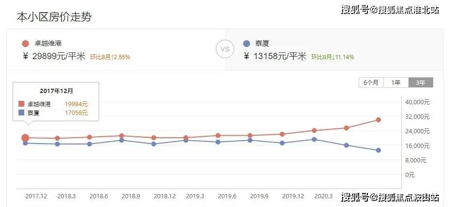 截图自安居客二手房卓越维港距陈屋站约700米,2017年12月二手单价为19994元/㎡,2020年9月二手单价29899元/㎡,其