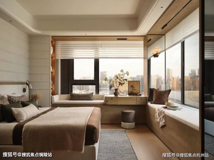 四季隐秀售楼处电线°飘窗,视觉延展感极强,整墙衣柜收纳无忧,独立卫生间保障私密,构筑男女主人的舒享套房。