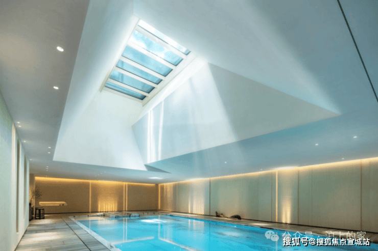 第三重,言上会己,专属于业主的惬意空间。仿罗马浴场的泳池,让业主在这里自由放松和运动。整个空间,引自然光入室,天窗之上有水波,池面上是水影,在地下三层营造出一个山林间氛围,自然自在。