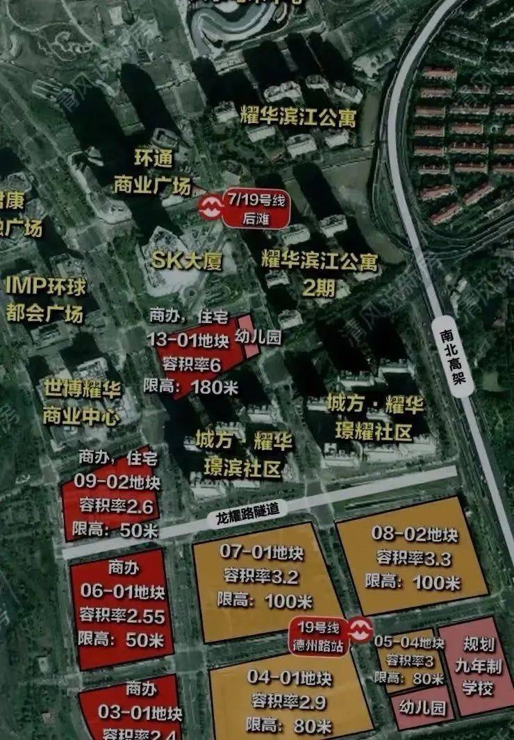 根据规划,后滩九宫格首排商业、商办地块皆是限高50米,而07-1、08-2地块限高100米,04-1、05-4地块限高80米。