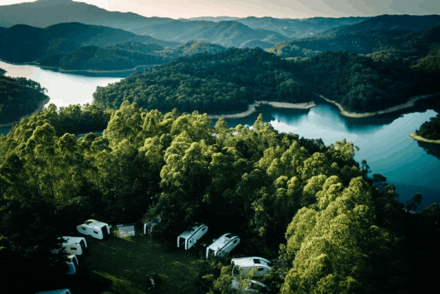 平时周末,可以一家人开车到大草坪来一场露营,又或者带上装备和孩子在近百条线路徒步,既能欣赏湖光山色,又能回归自然。