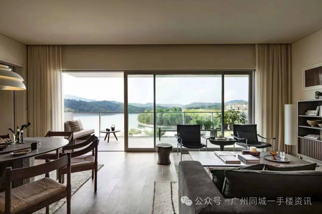 上庭下院设计,很有叠墅的感觉,还能望4A级的九龙湖头排湖景。240㎡户型板房,刚进二层客厅,壮丽的湖山画卷就在眼前铺开,在广州能把景区作为家中背景板的项目,确实没几个。