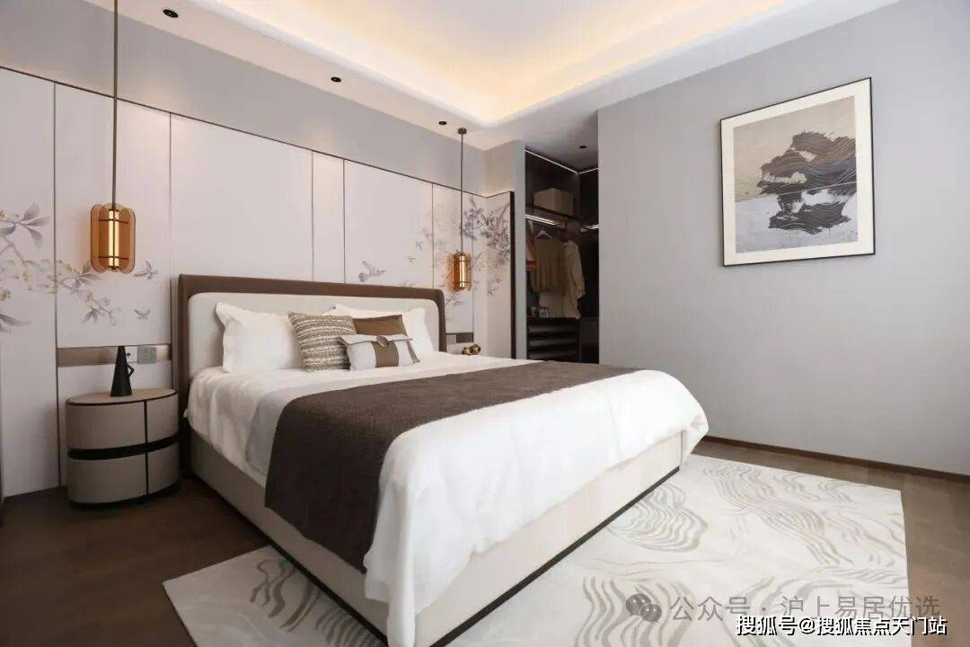 三层称得上是主人独立的“休憩行宫”了,一整层都是主卧!就寝区、衣帽间、卫浴间应有尽有,而且尺度还很舒适。
