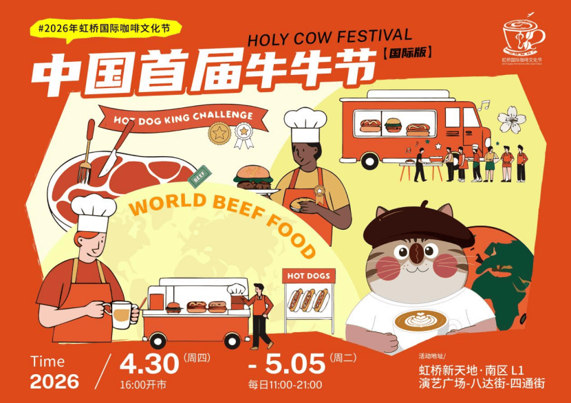 中国首届牛牛节(国际版):环球牛肉风味主题市集,汇聚四大洲近30款牛肉料理,搭配主厨秀、知识课堂和趣味打卡,还有精品咖啡与牛奶的创意混搭等你品尝。